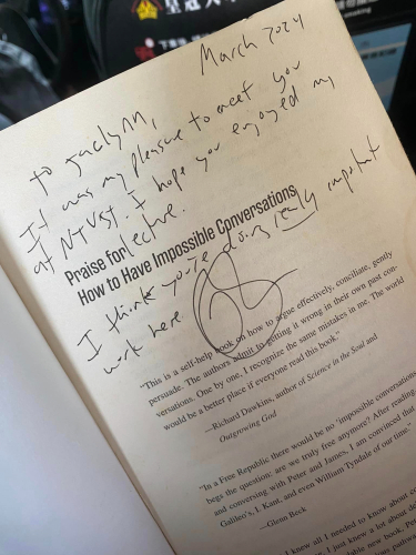 Dr. Boghossian was kind enough to sign my copy of How to Have Impossible Conversations
